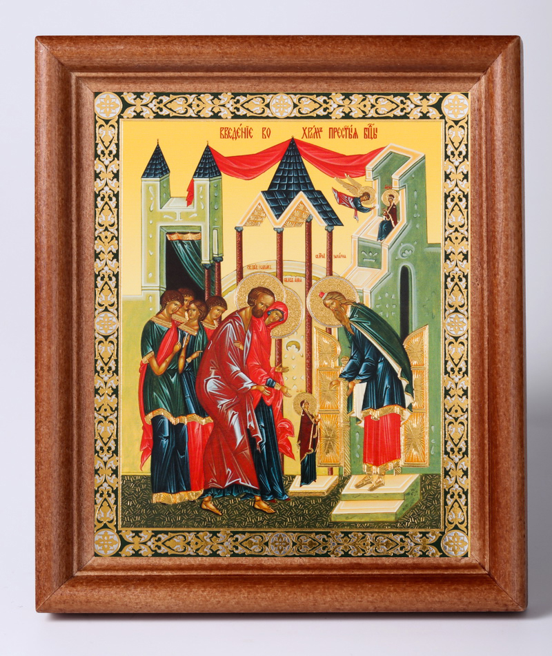 Икона в деревянной рамке №1 11х13 двойное тиснение Введение во храм Пресвятой Богородицы