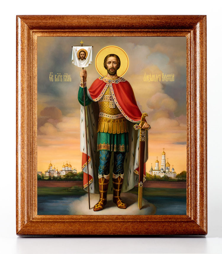 Икона в деревянной рамке №1 11х13 изображение на пластике Александр Невский (рост)
