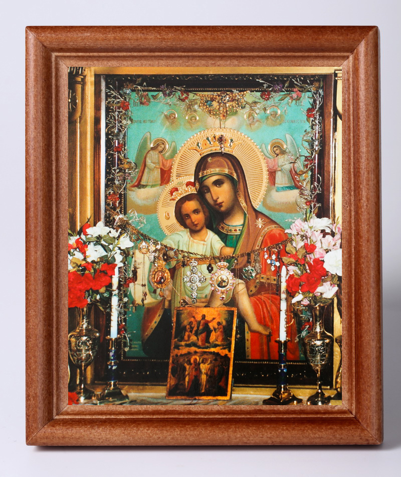Икона в деревянной рамке №1 11х13 тиснение Достойно Есть (Иерусалимская)