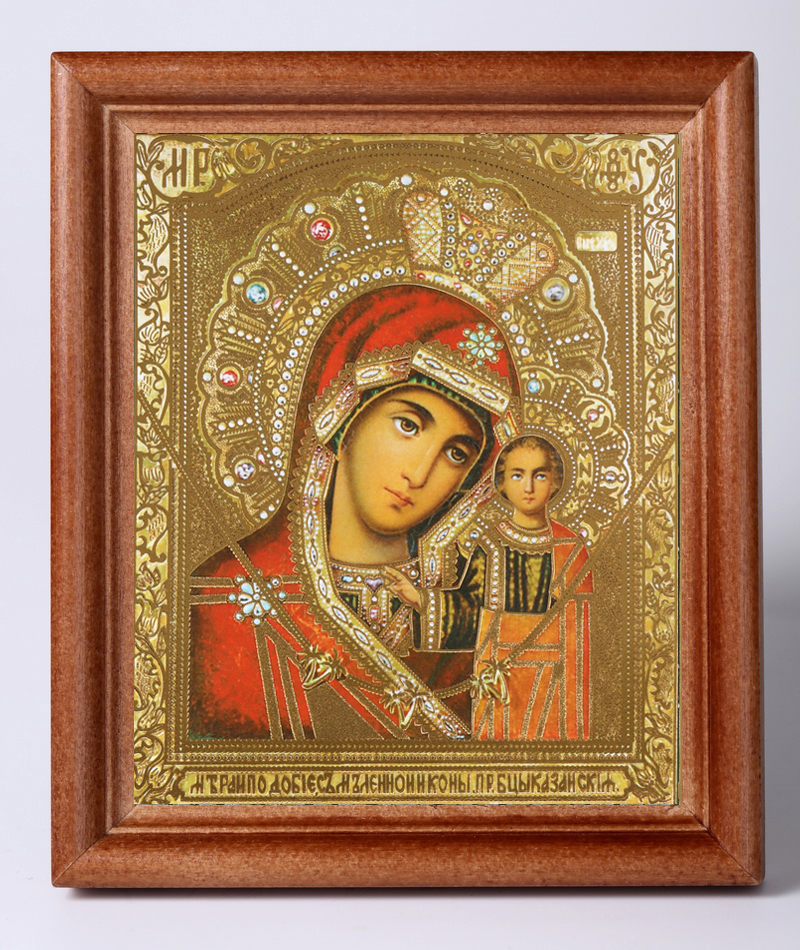 Икона в деревянной рамке №1 11х13 тиснение Казанская Иерусалимская БМ