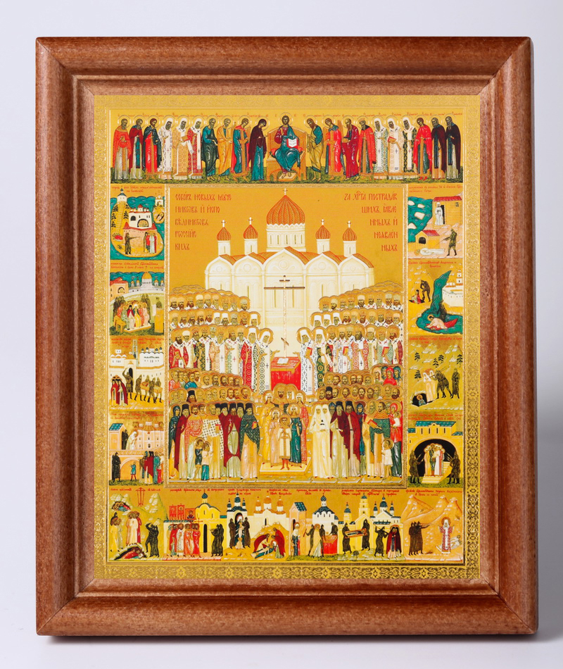 Икона в деревянной рамке №1 11х13 тиснение Собор новомучеников и исповед. Российских с жит.