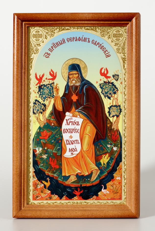 Икона в деревянной рамке №1 11х22 двойное тиснение Серафим Саровский (ростовой) 2