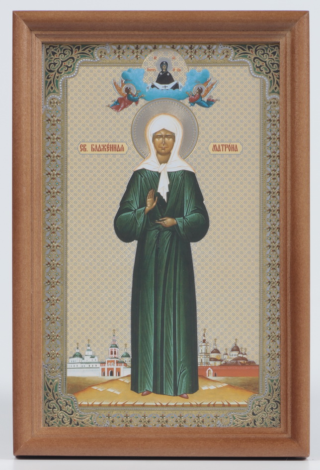 Икона в деревянной рамке №1 13х18 двойное тиснение Матрона Московская (ростовая) (2)