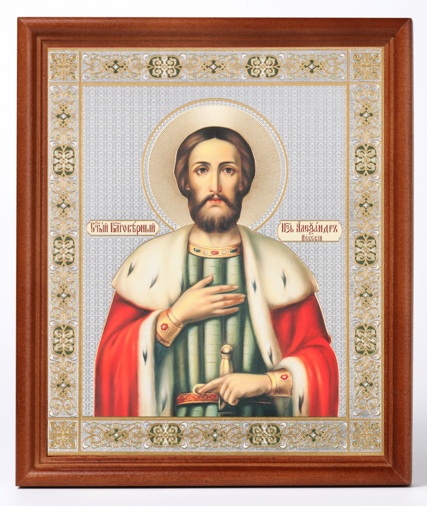 Икона в деревянной рамке №1 18х24 двойное тиснение Александр Невский