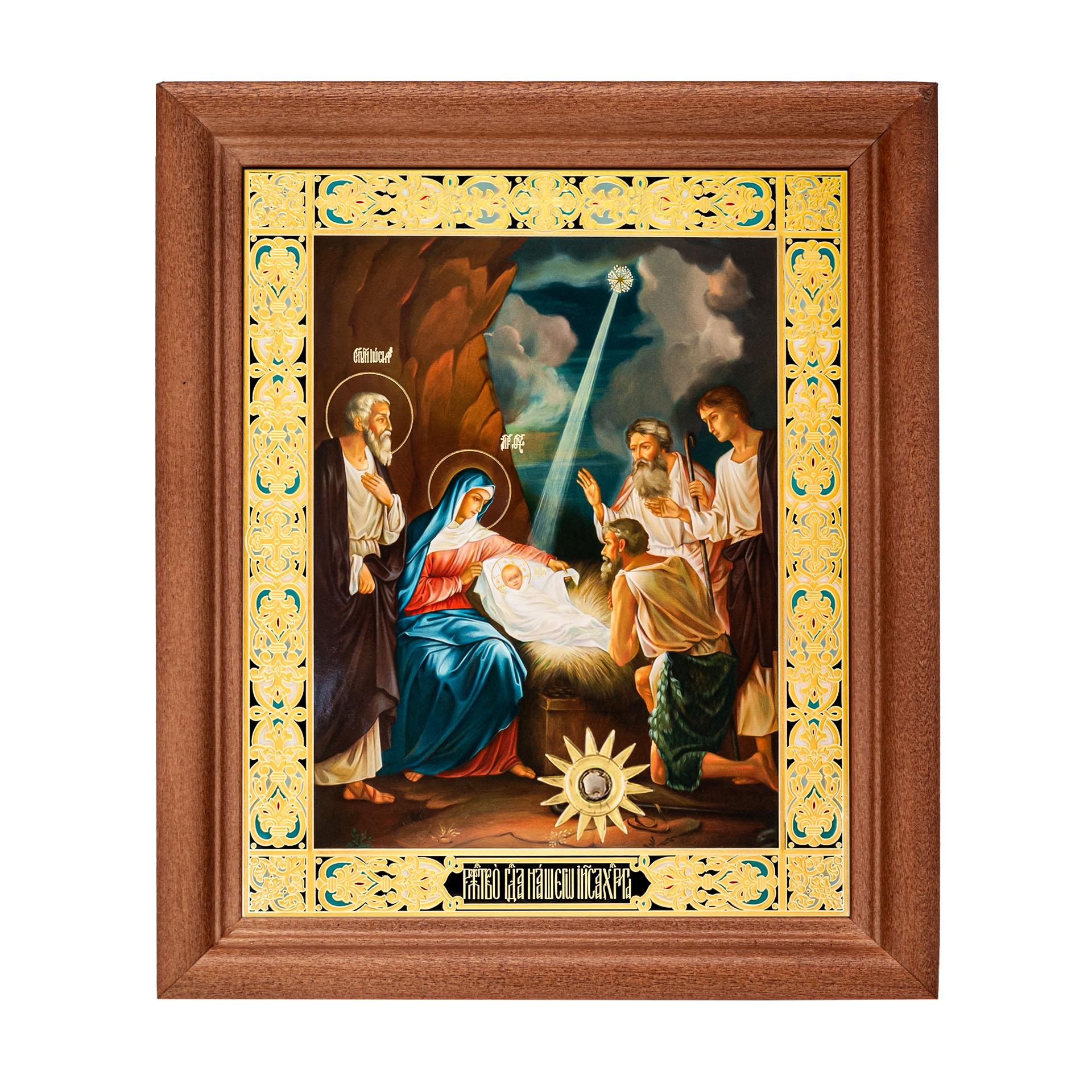 Икона в деревянной рамке №1 18х24 двойное тиснение, БЗГ, мощевик-звезда, упаковка Рождество Христово 64
