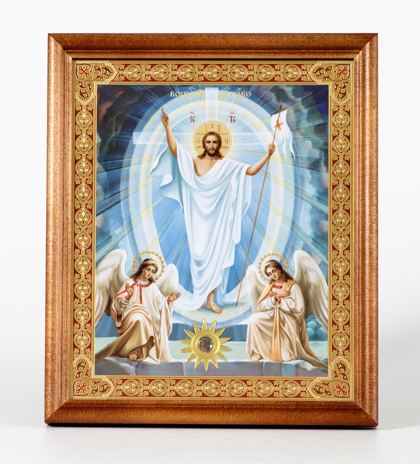 Икона в деревянной рамке №1 18х24 двойное тиснение, БЗГ, мощевик-звезда, упаковка Воскресение Христово 25