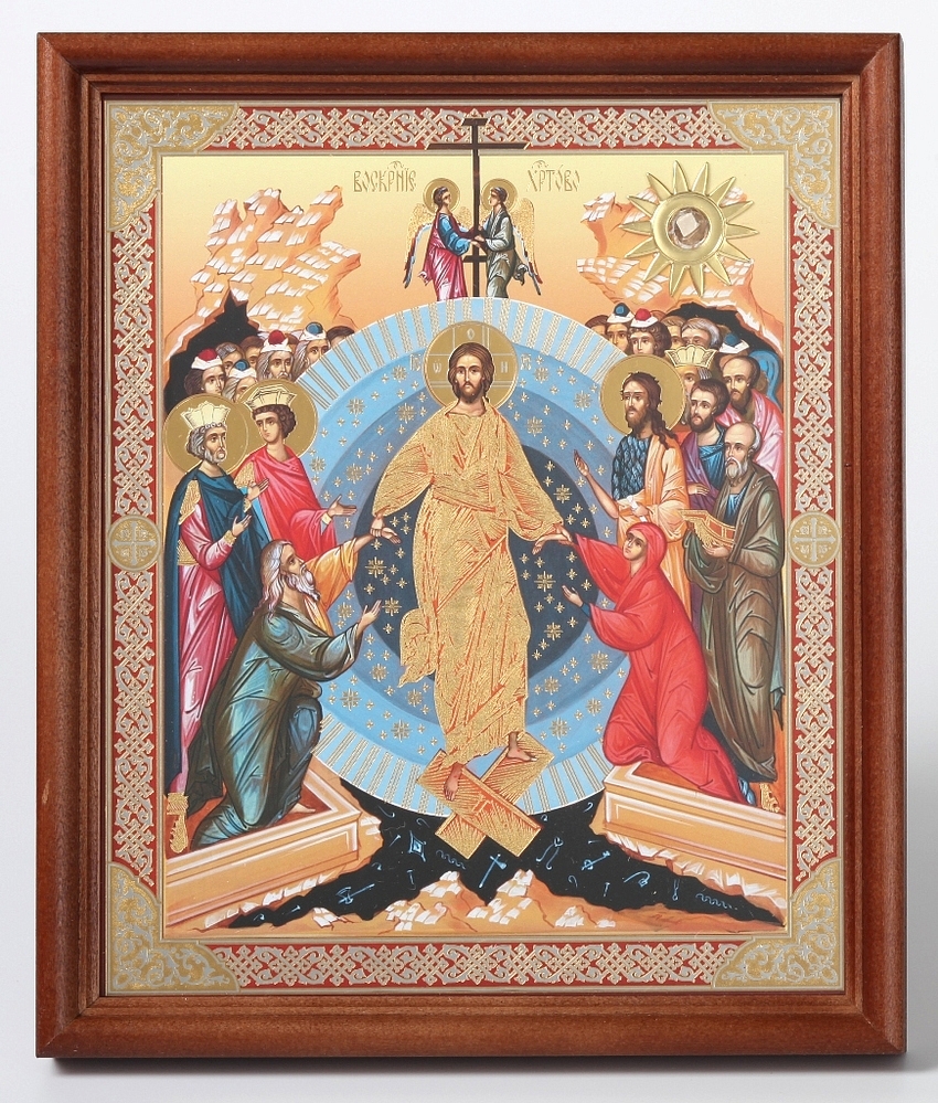 Икона в деревянной рамке №1 18х24 двойное тиснение, БЗГ, мощевик-звезда, упаковка Воскресение Христово 54