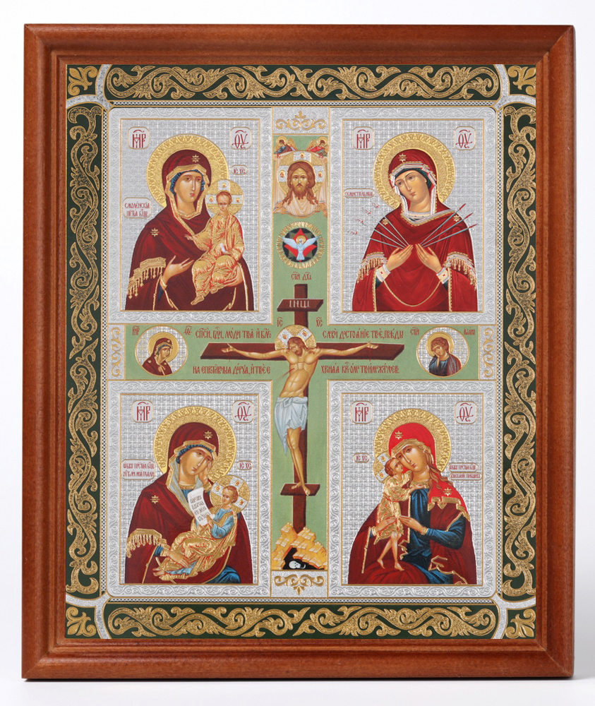 Икона в деревянной рамке №1 18х24 двойное тиснение Четырехчастная