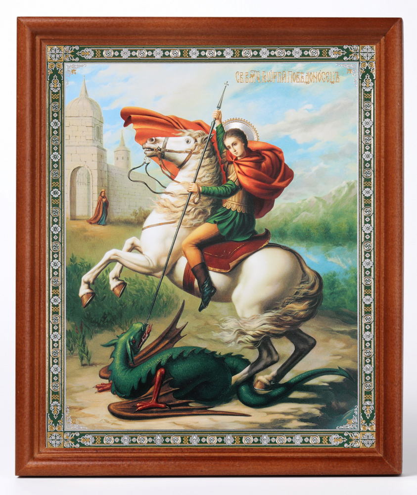 Икона в деревянной рамке №1 18х24 двойное тиснение Чудо Георгия о змие