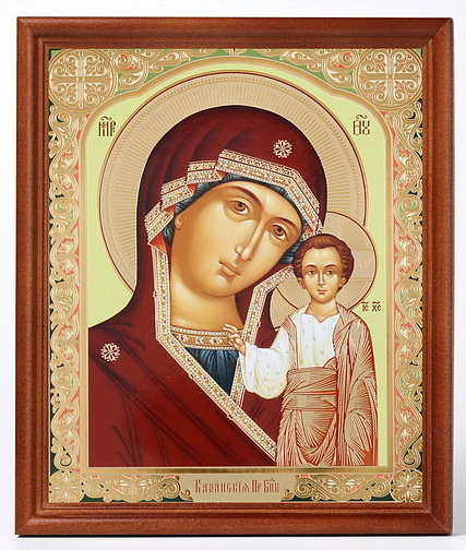 Икона в деревянной рамке №1 18х24 двойное тиснение Казанская БМ 28