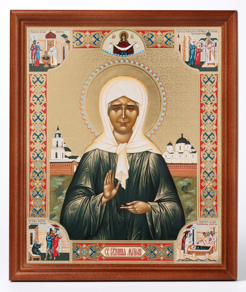 Икона в деревянной рамке №1 18х24 двойное тиснение Матрона Московская (с клеймами) (2)