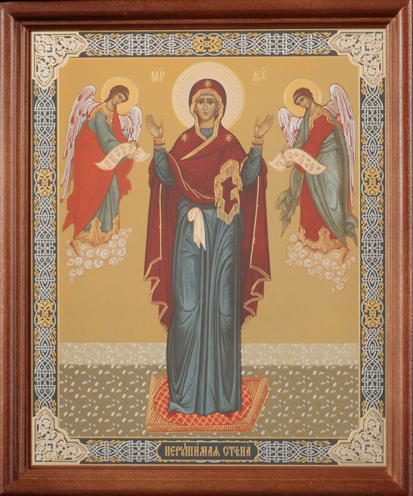 Икона в деревянной рамке №1 18х24 двойное тиснение Нерушимая Стена (с предстоящими)