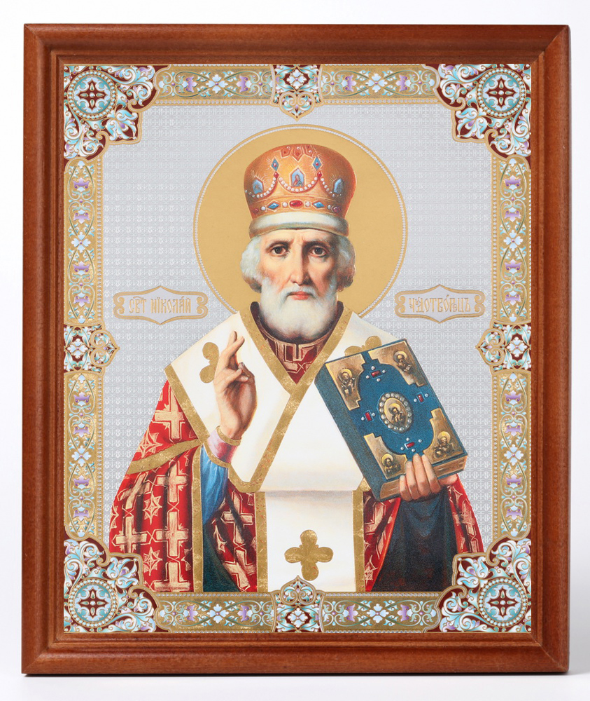 Икона в деревянной рамке №1 18х24 двойное тиснение Николай Чудотворец 14
