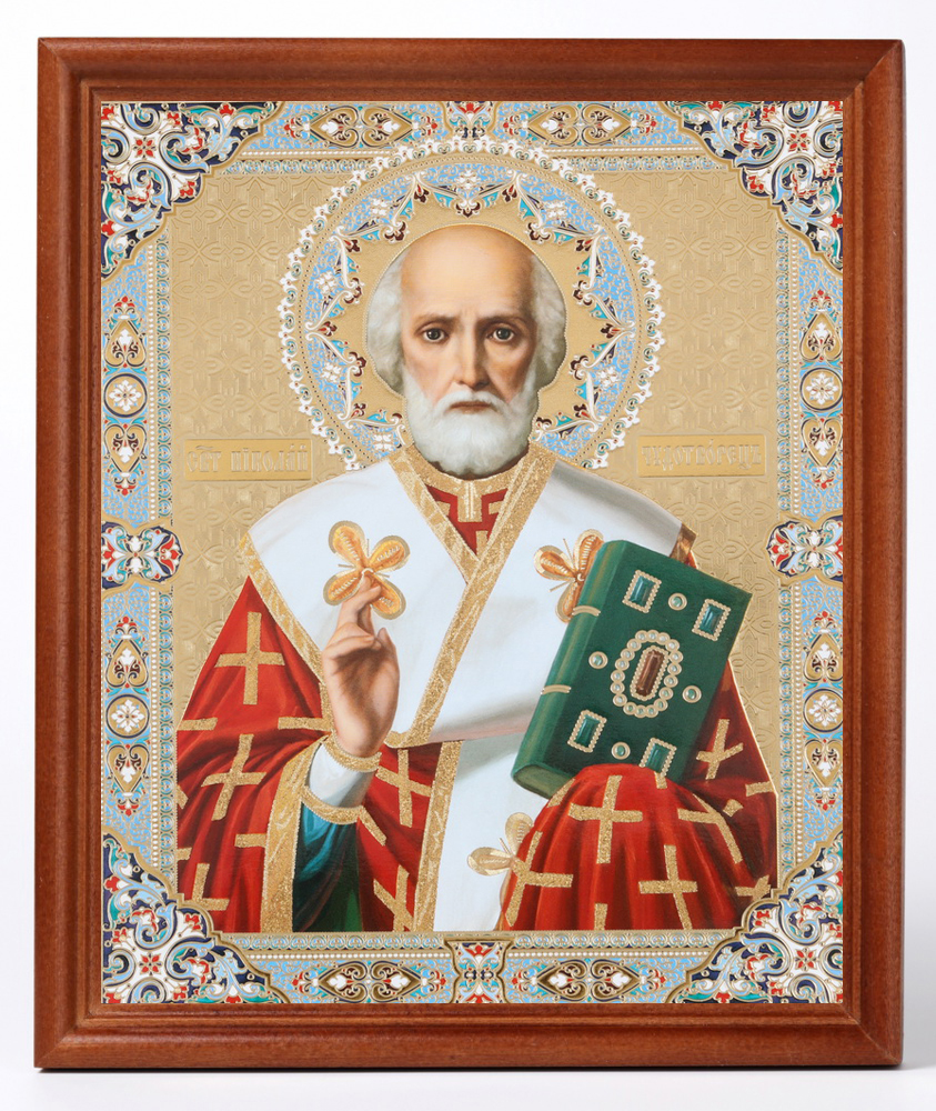 Икона в деревянной рамке №1 18х24 двойное тиснение Николай Чудотворец 17
