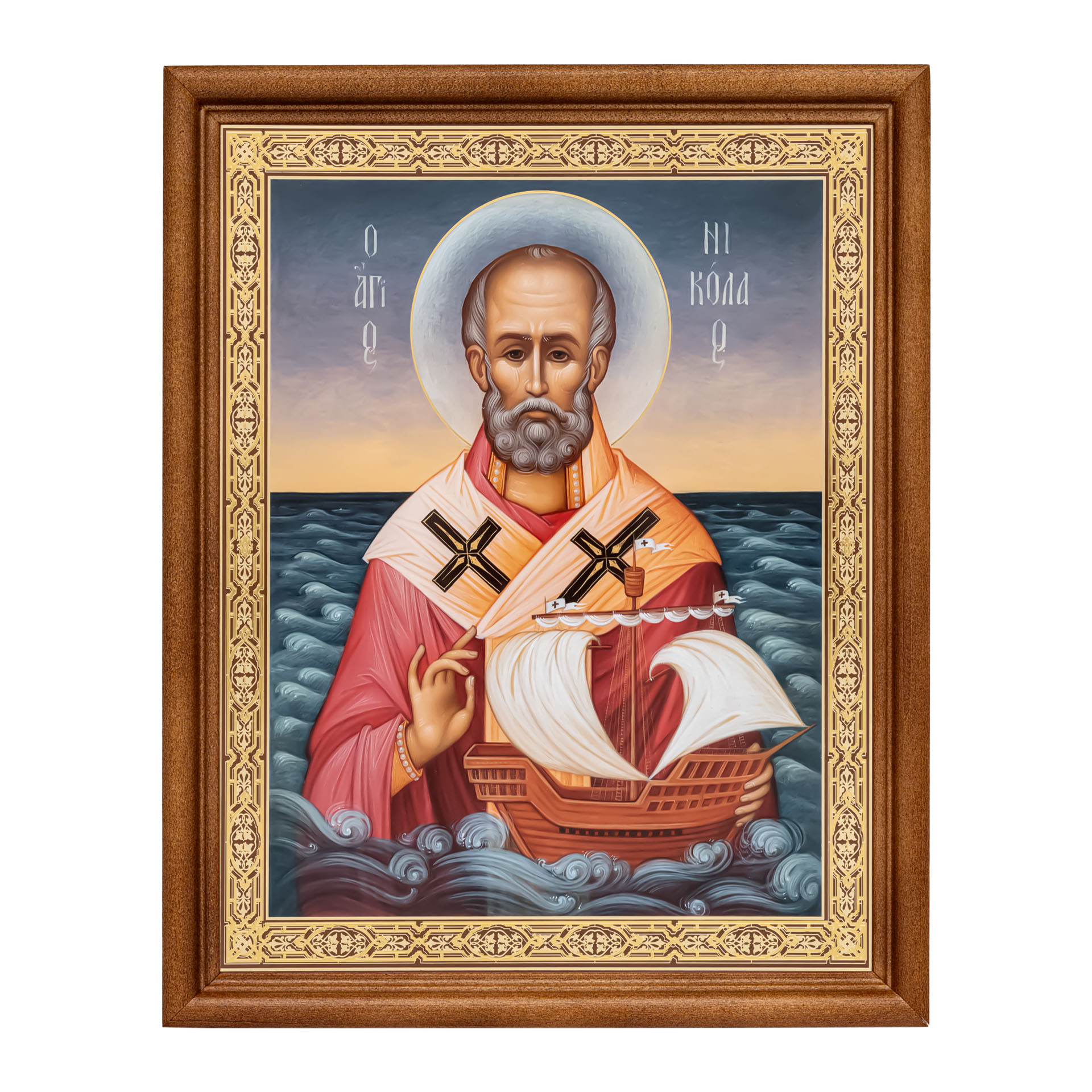 Икона в деревянной рамке №1 18х24 двойное тиснение Николай Чудотворец 19