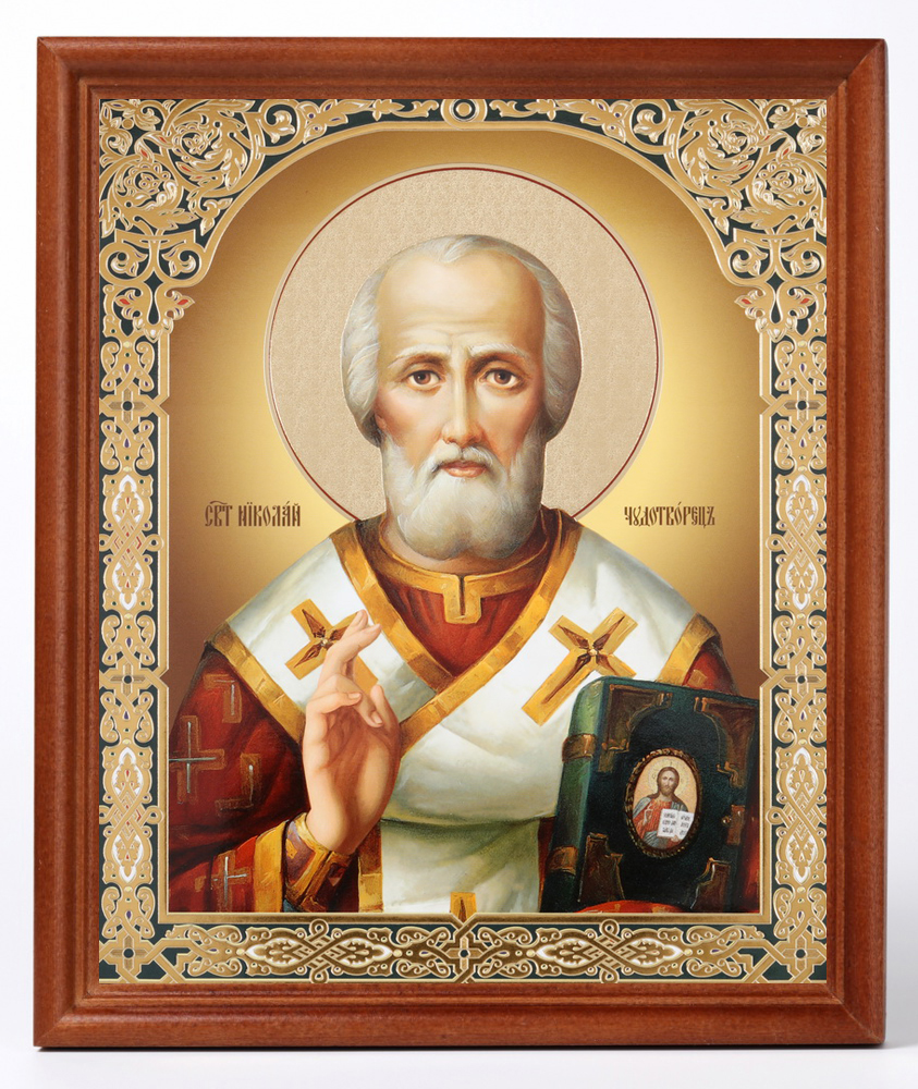 Икона в деревянной рамке №1 18х24 двойное тиснение Николай Чудотворец 30