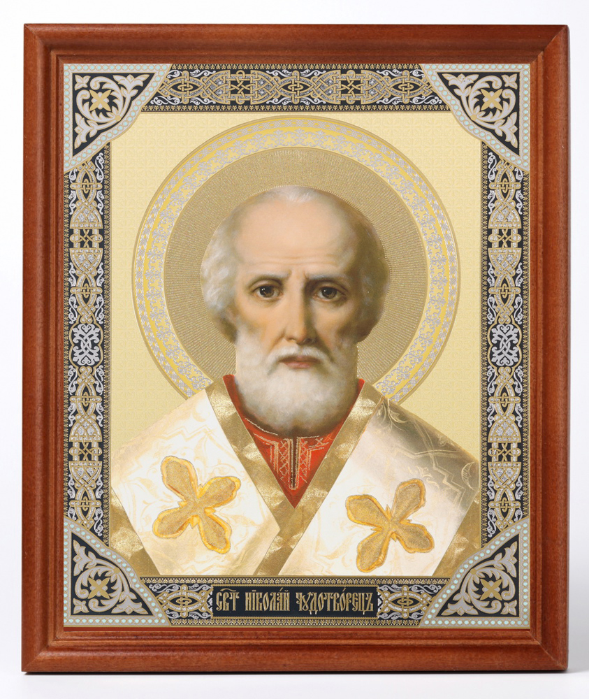 Икона в деревянной рамке №1 18х24 двойное тиснение Николай Чудотворец 31