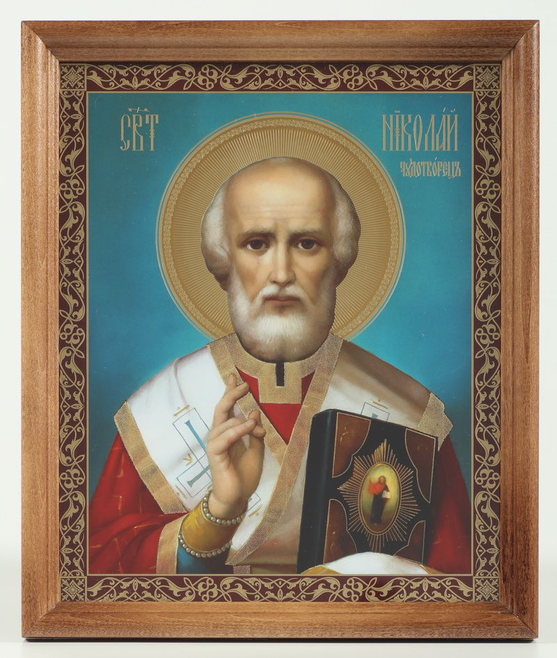 Икона в деревянной рамке №1 18х24 двойное тиснение Николай Чудотворец 34