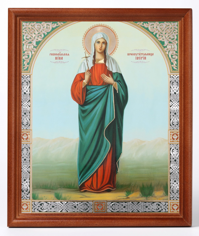 Икона в деревянной рамке №1 18х24 двойное тиснение Нина (рост.)