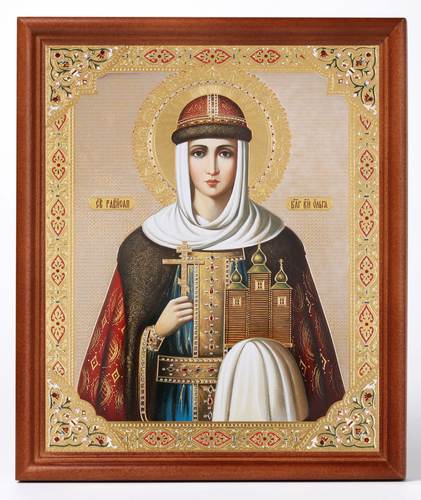 Икона в деревянной рамке №1 18х24 двойное тиснение Ольга, св. равноап. вел. княгиня (5)