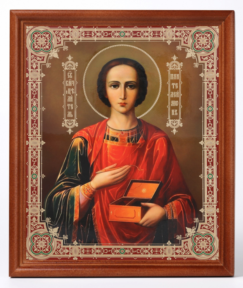 Икона в деревянной рамке №1 18х24 двойное тиснение Пантелеимон 4