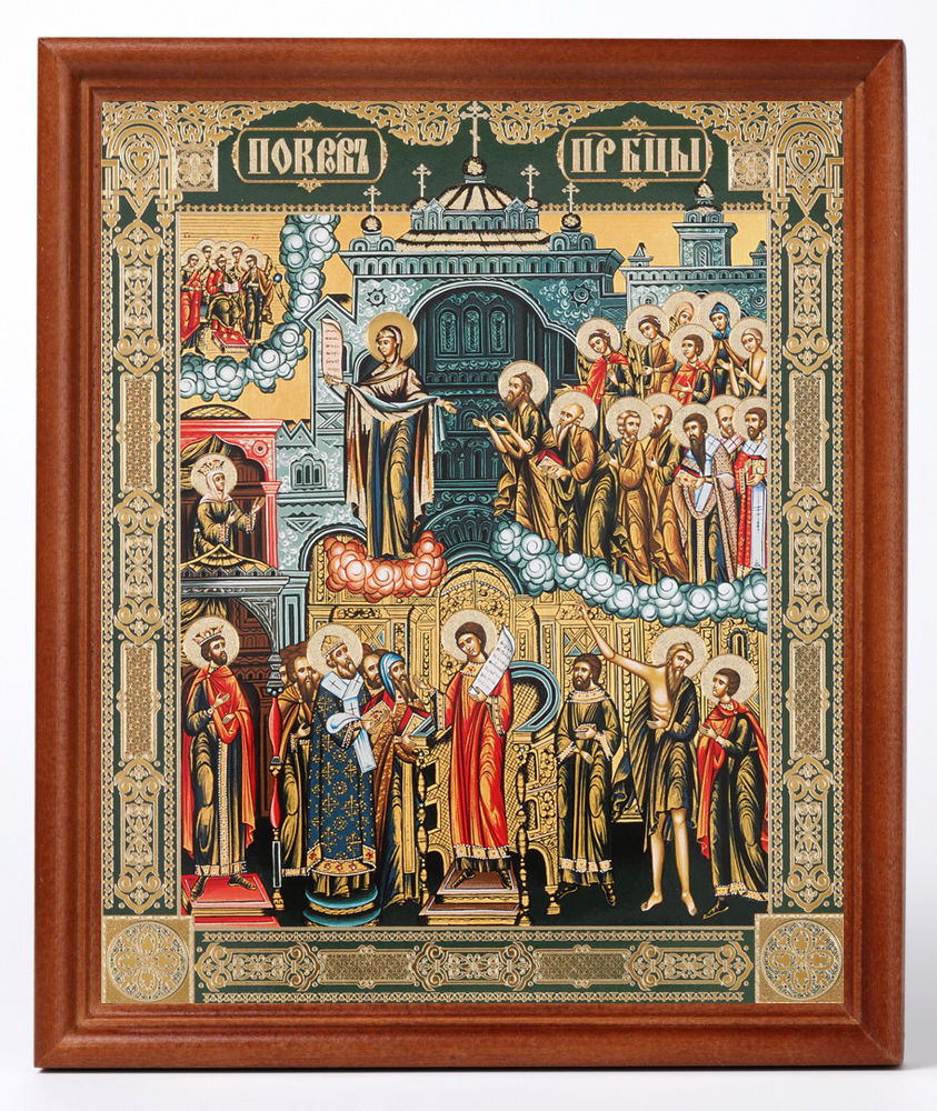 Икона в деревянной рамке №1 18х24 двойное тиснение Покров Хотьковский 01