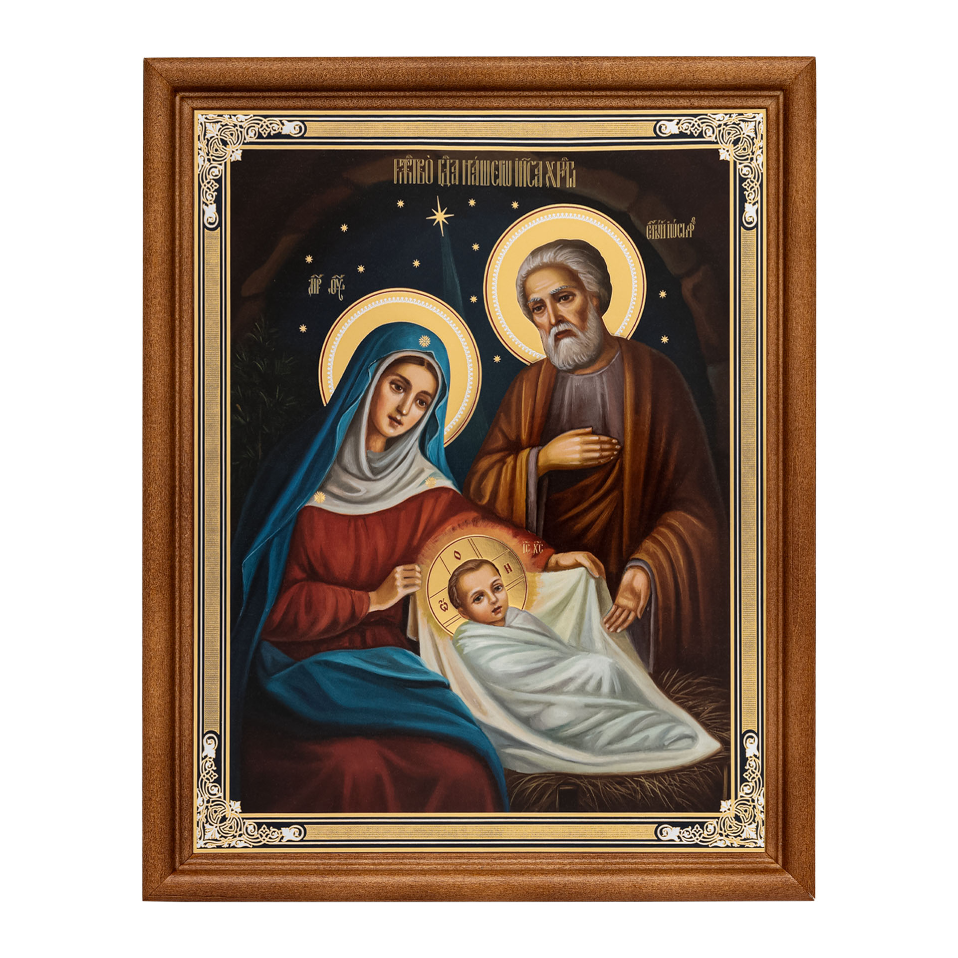 Икона в деревянной рамке №1 18х24 двойное тиснение Рождество Христово 68
