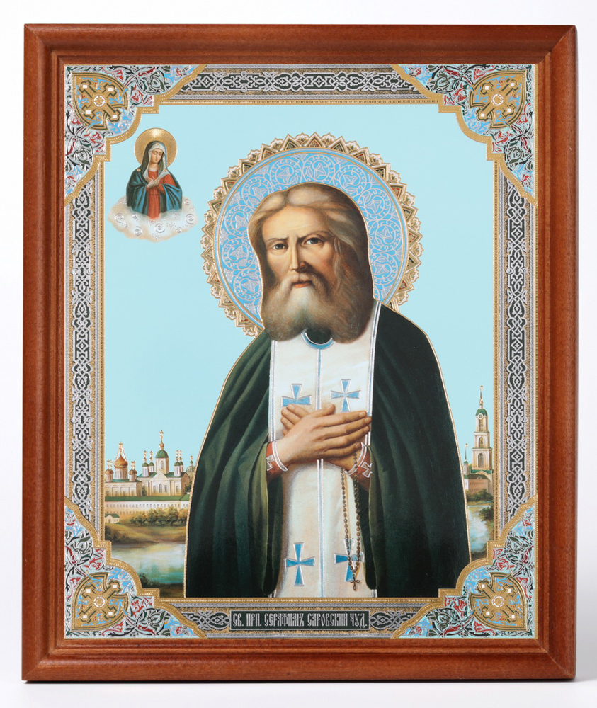 Икона в деревянной рамке №1 18х24 двойное тиснение Серафим Саровский 2