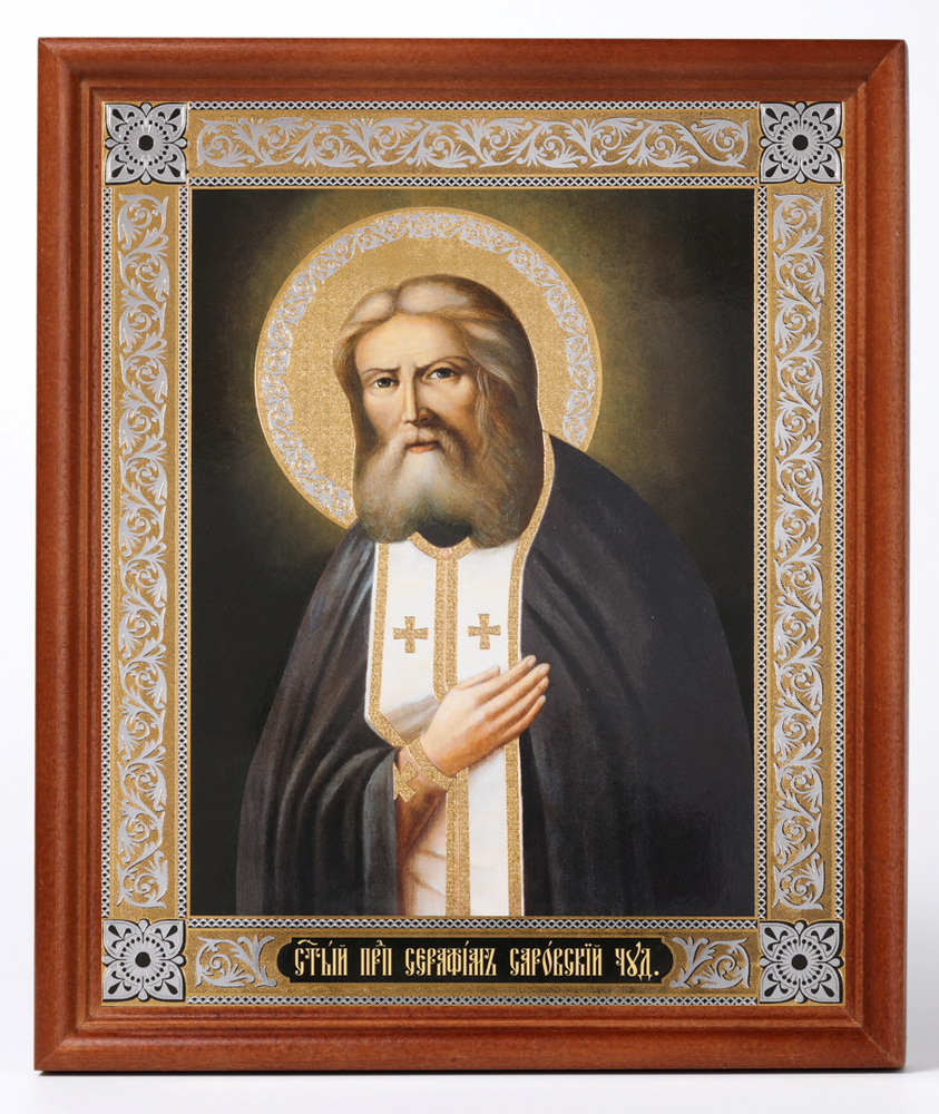 Икона в деревянной рамке №1 18х24 двойное тиснение Серафим Саровский 3