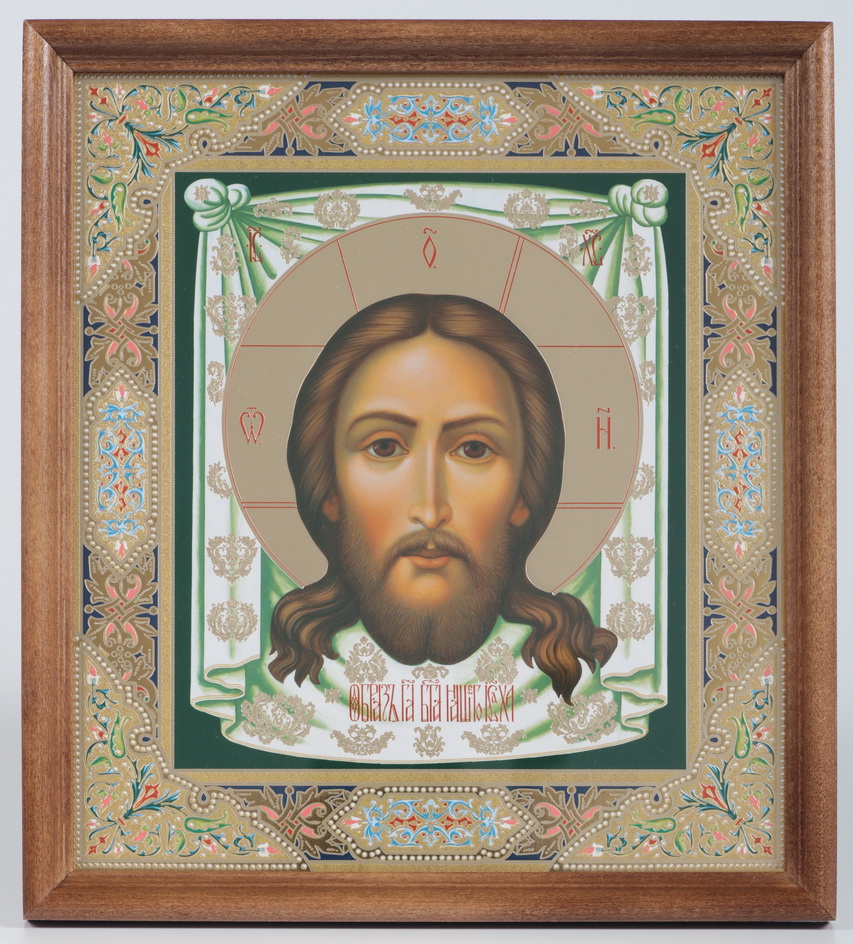 Икона в деревянной рамке №1 18х24 двойное тиснение Спас Нерукотворный 01