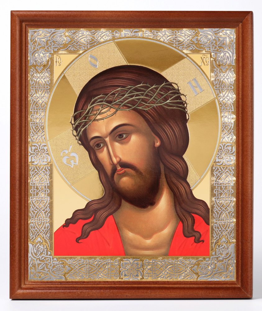 Икона в деревянной рамке №1 18х24 двойное тиснение Спас в терновом венце №2