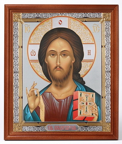 Икона в деревянной рамке №1 18х24 двойное тиснение Спаситель 21