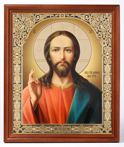 Икона в деревянной рамке №1 18х24 двойное тиснение Спаситель 30