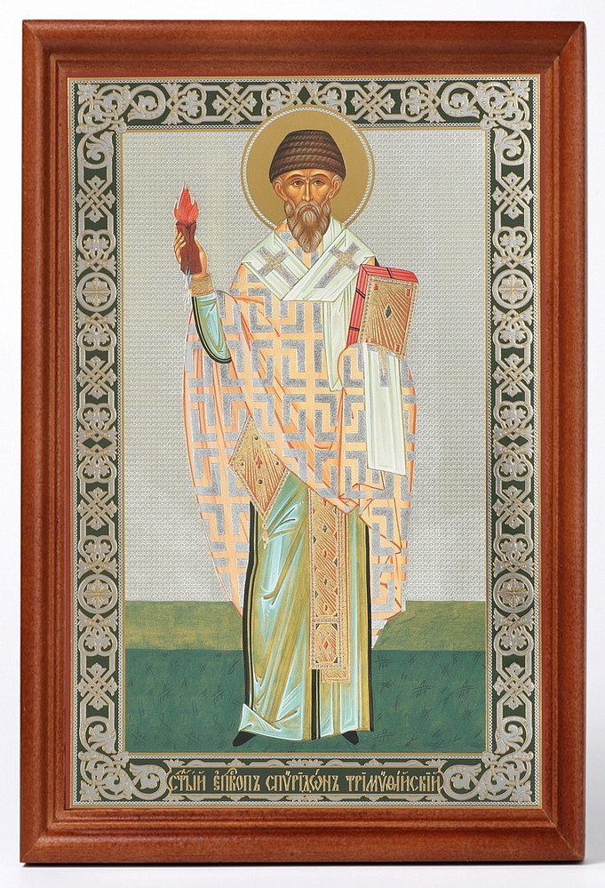 Икона в деревянной рамке №1 18х24 двойное тиснение Спиридон Тримифунтский (рост.)