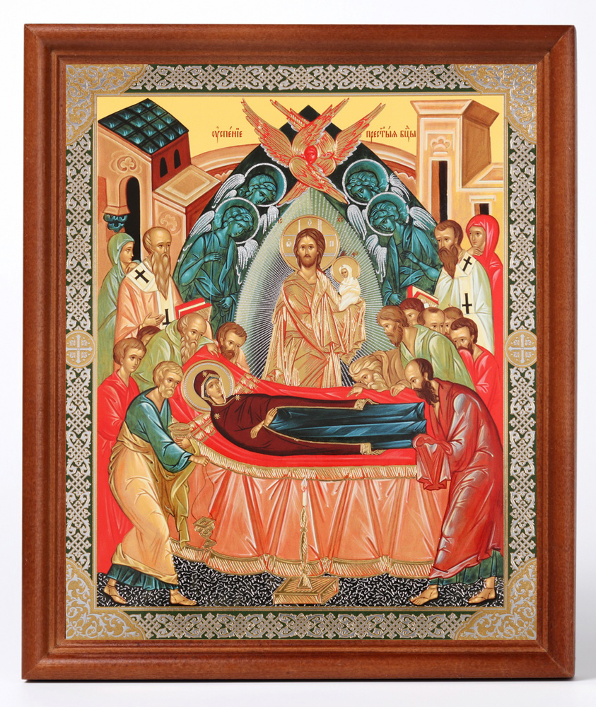 Икона в деревянной рамке №1 18х24 двойное тиснение Успение Богородицы