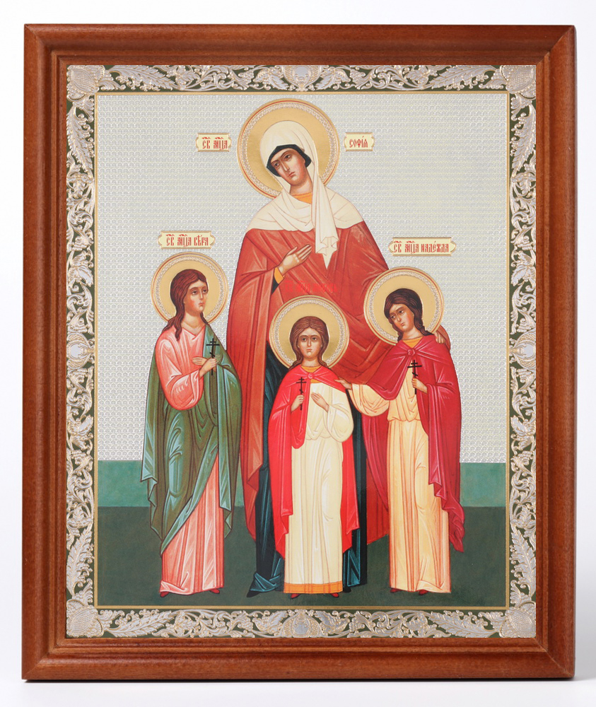 Икона в деревянной рамке №1 18х24 двойное тиснение Вера Надежда Любовь