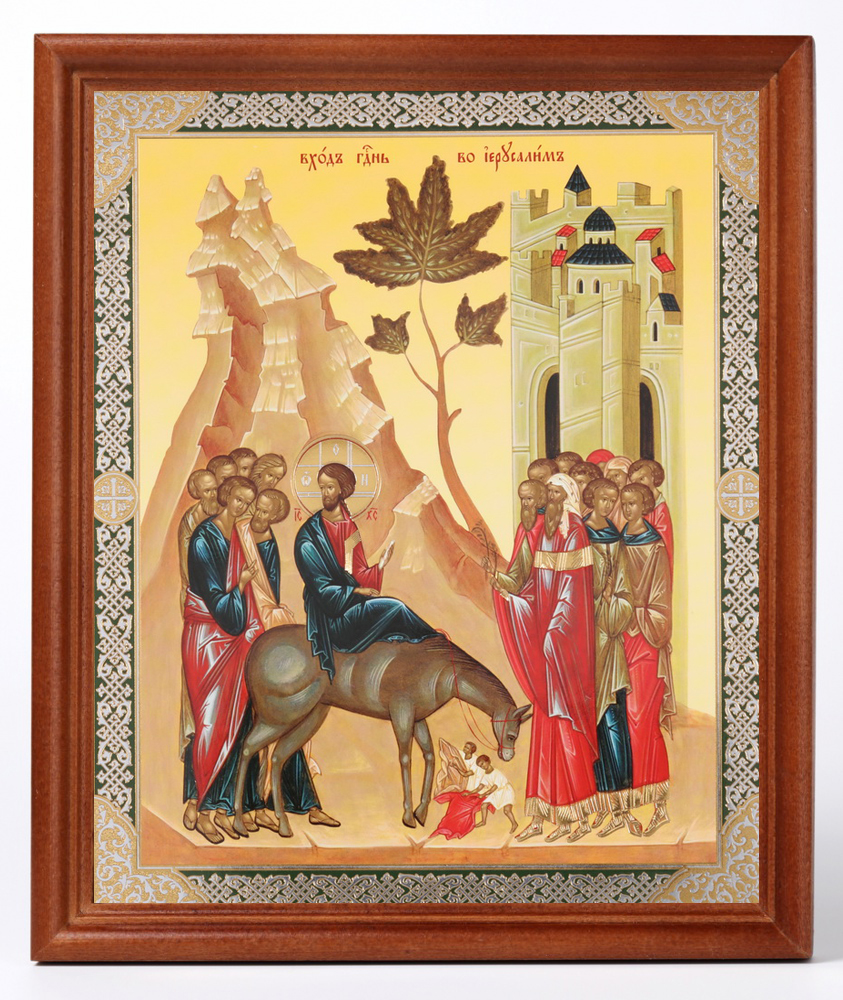 Икона в деревянной рамке №1 18х24 двойное тиснение Вход в Иерусалим