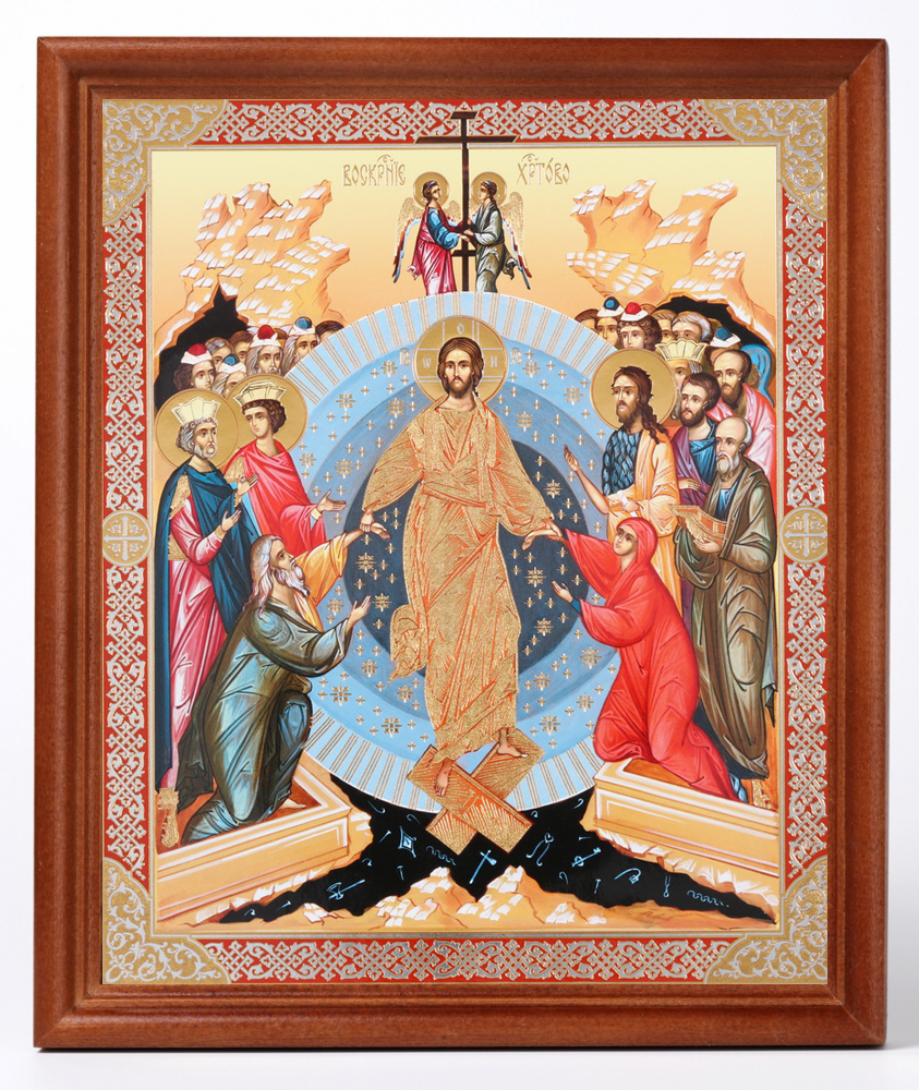 Икона в деревянной рамке №1 18х24 двойное тиснение Воскресение Христово 54