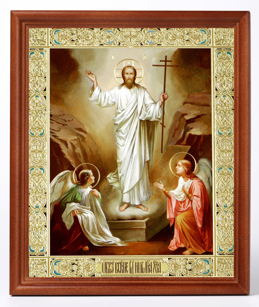Икона в деревянной рамке №1 18х24 двойное тиснение Воскресение Христово 64