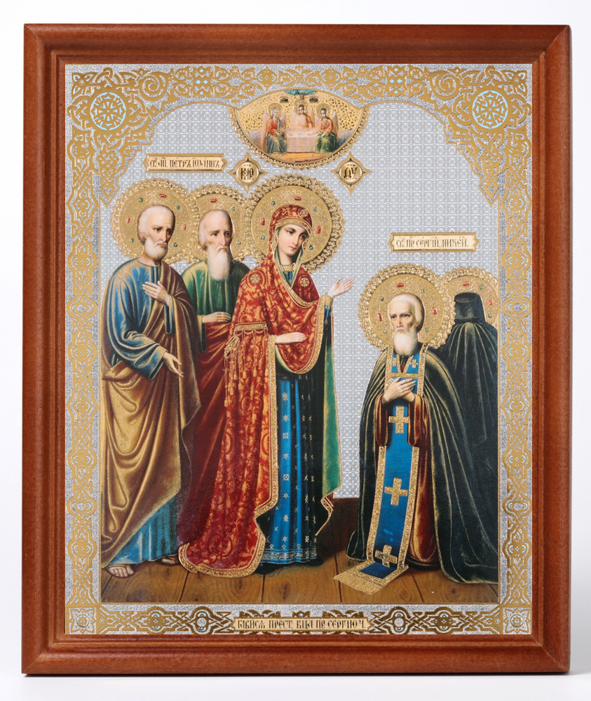Икона в деревянной рамке №1 18х24 двойное тиснение Явление Богородицы Сергию Радонежскому