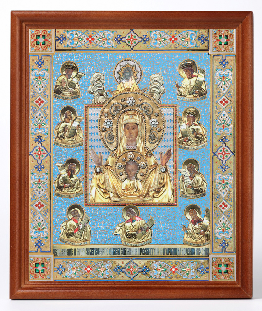 Икона в деревянной рамке №1 18х24 двойное тиснение Знамение Курско-Корен. иконы на гол.фоне