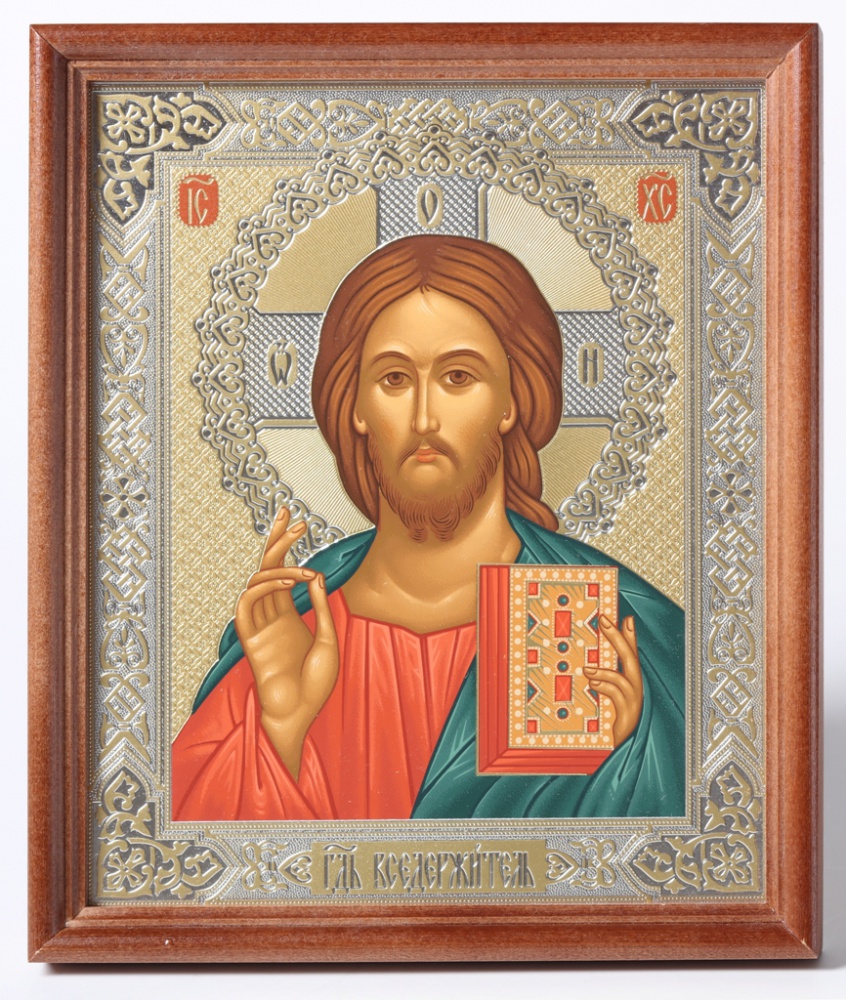 Икона в деревянной рамке №1 18х24 темпера №5 Спаситель (белый фон)