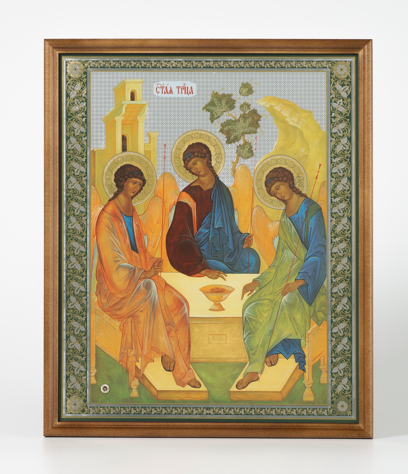 Икона в деревянной рамке №1 30х40 двойное тиснение, БЗГ, упаковка Троица (Рублевская)