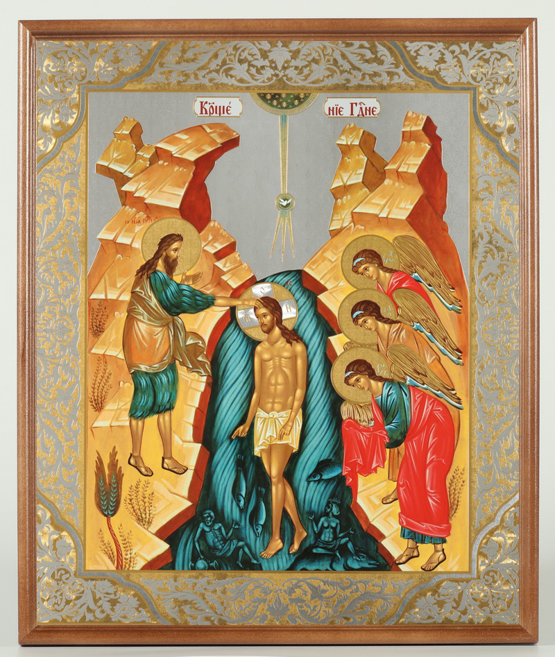 Икона в деревянной рамке №1 30х40 двойное тиснение, упаковка Богоявление