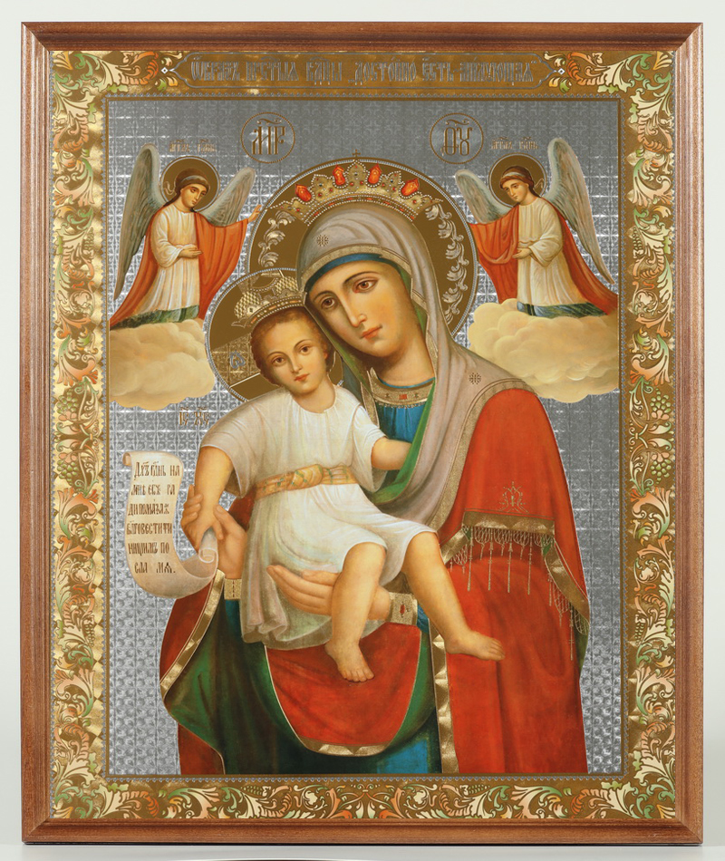 Икона в деревянной рамке №1 30х40 двойное тиснение, упаковка Достойно Есть