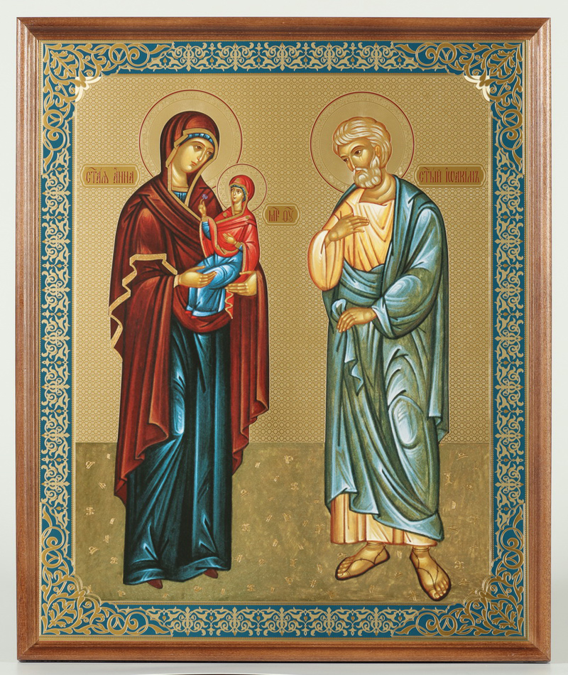 Икона в деревянной рамке №1 30х40 двойное тиснение, упаковка Иоаким и Анна