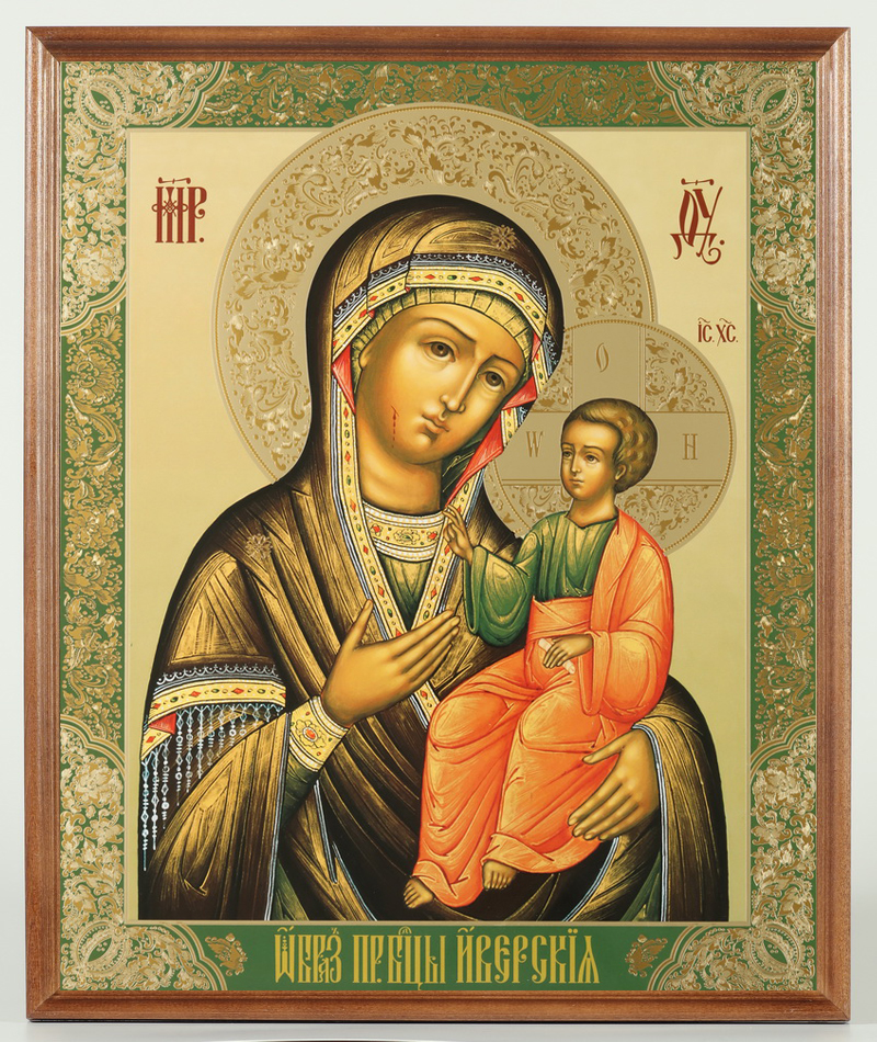 Икона в деревянной рамке №1 30х40 двойное тиснение, упаковка Иверская БМ 01