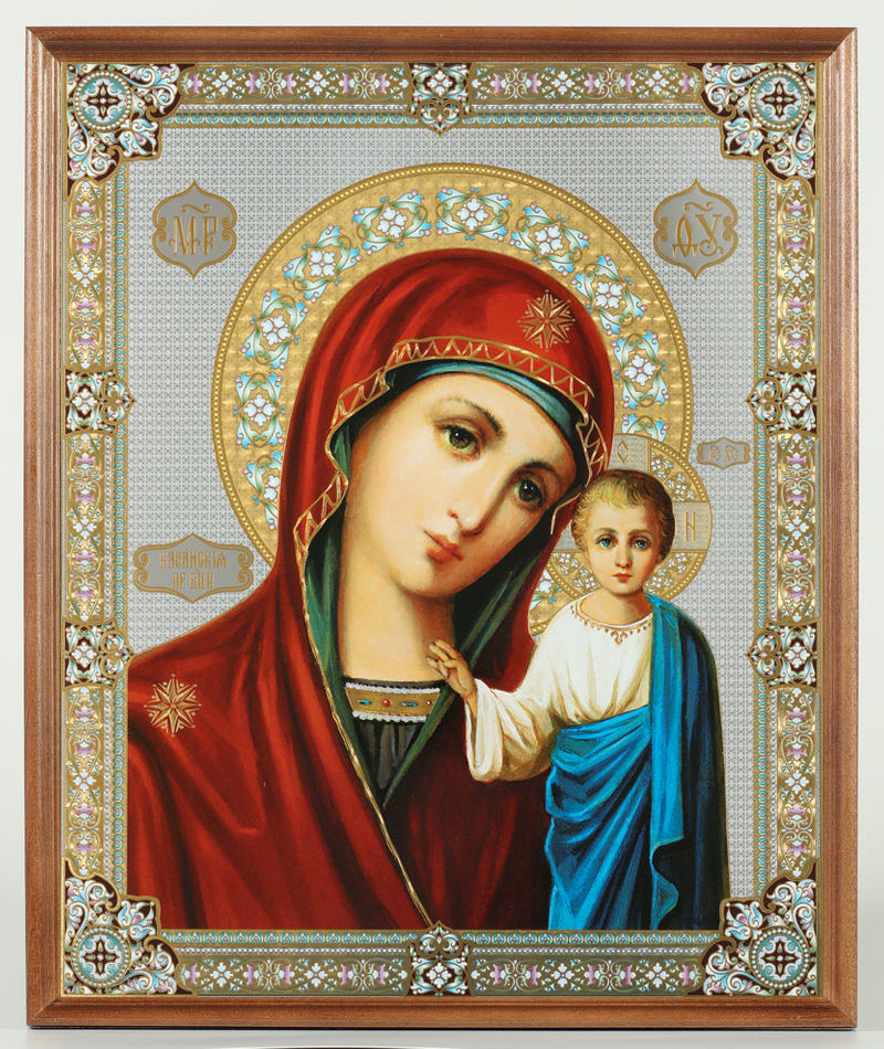 Икона в деревянной рамке №1 30х40 двойное тиснение, упаковка Казанская БМ 14