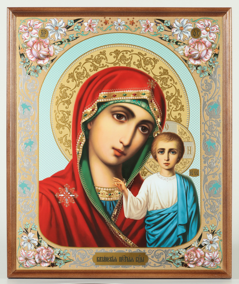 Икона в деревянной рамке №1 30х40 двойное тиснение, упаковка Казанская БМ 26