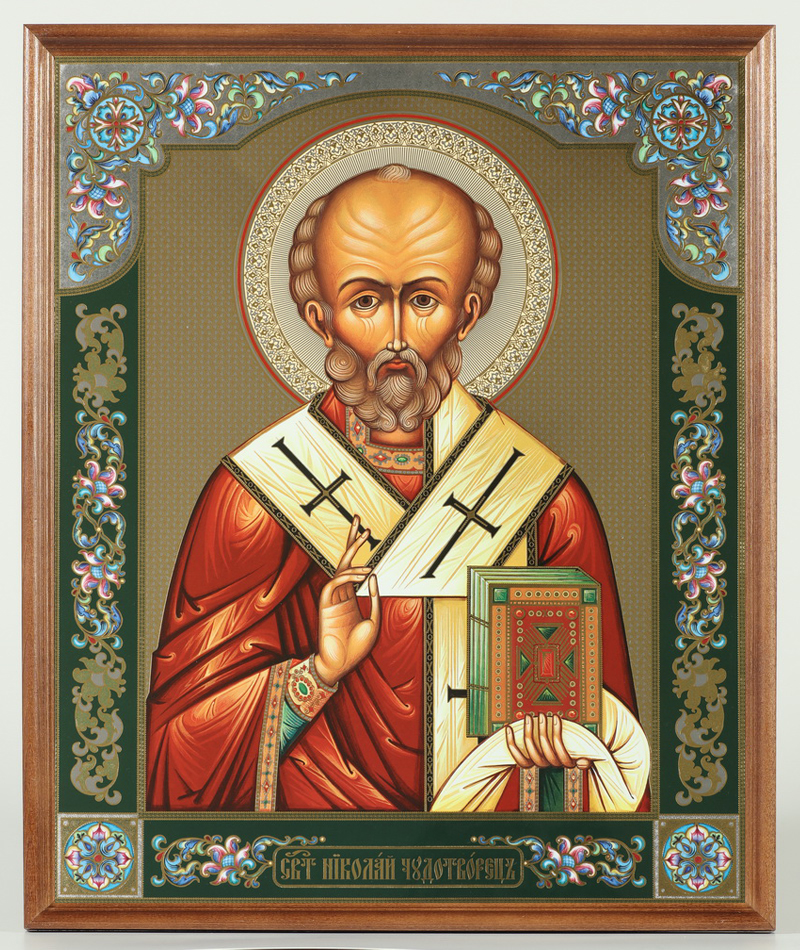 Икона в деревянной рамке №1 30х40 двойное тиснение, упаковка Николай Чудотворец 10